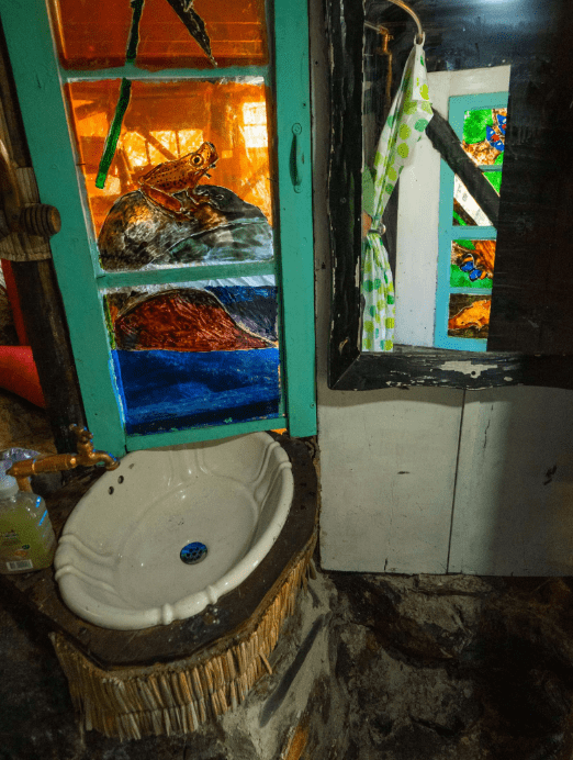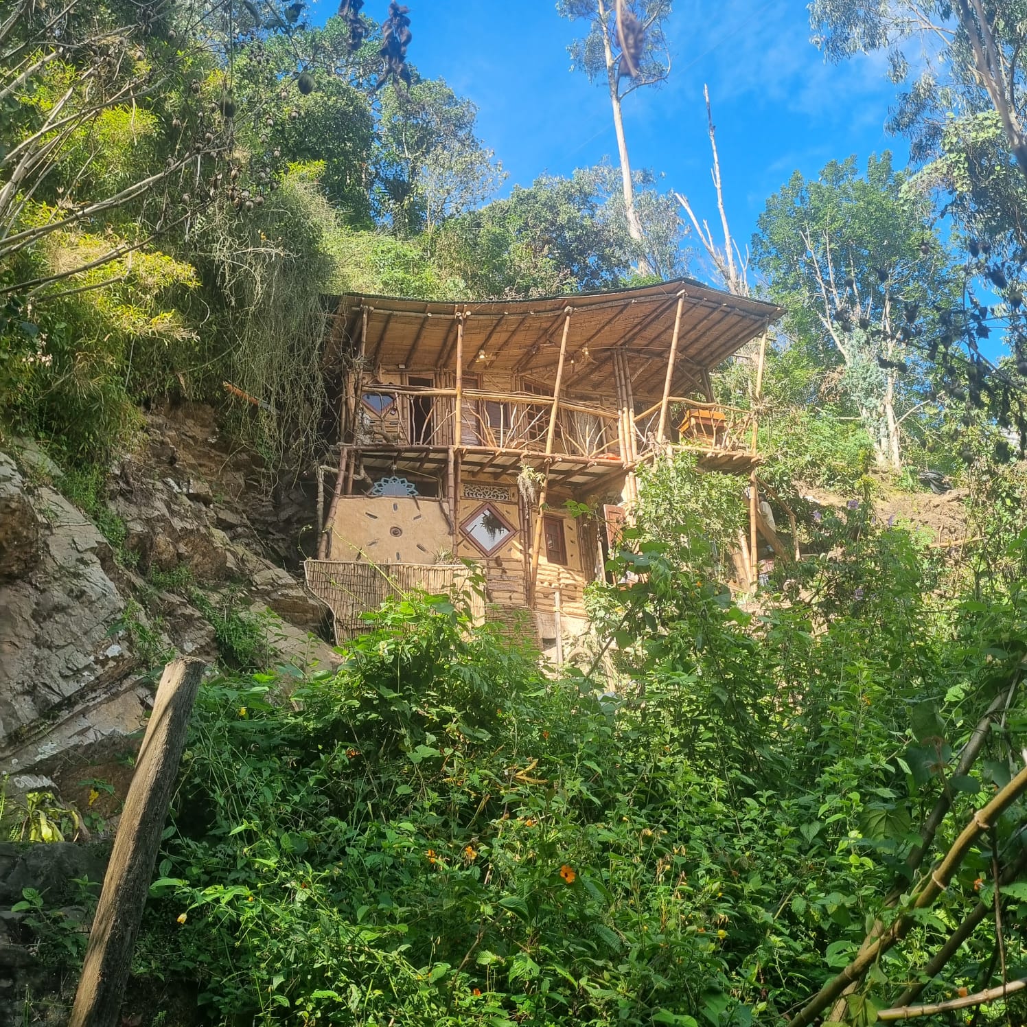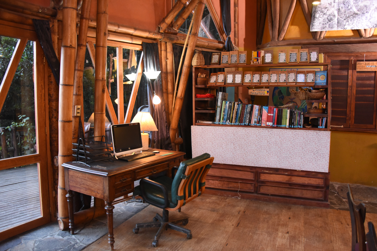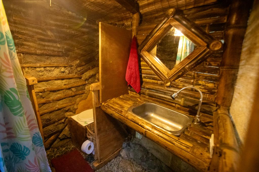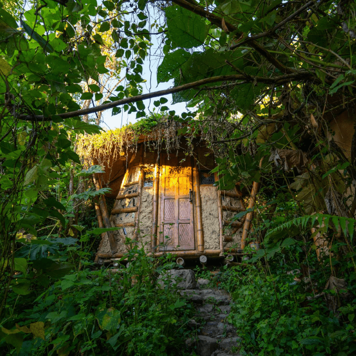 Dormir con el arrullo de una quebrada es una terapia extraordinaria y despertarse metiéndose en la quebrada mejora el sistema inmunológico. Mama Yaku o Madre Agua, esta construida en bareque y guadua. Su estructura octagonal en forma de hongo sostiene un techo verde.
