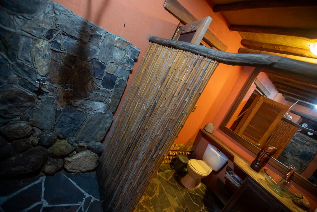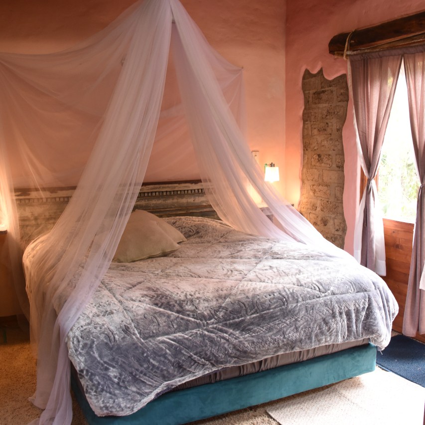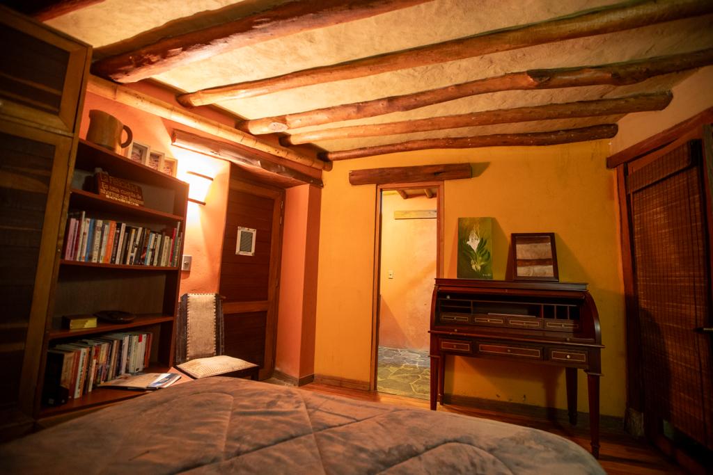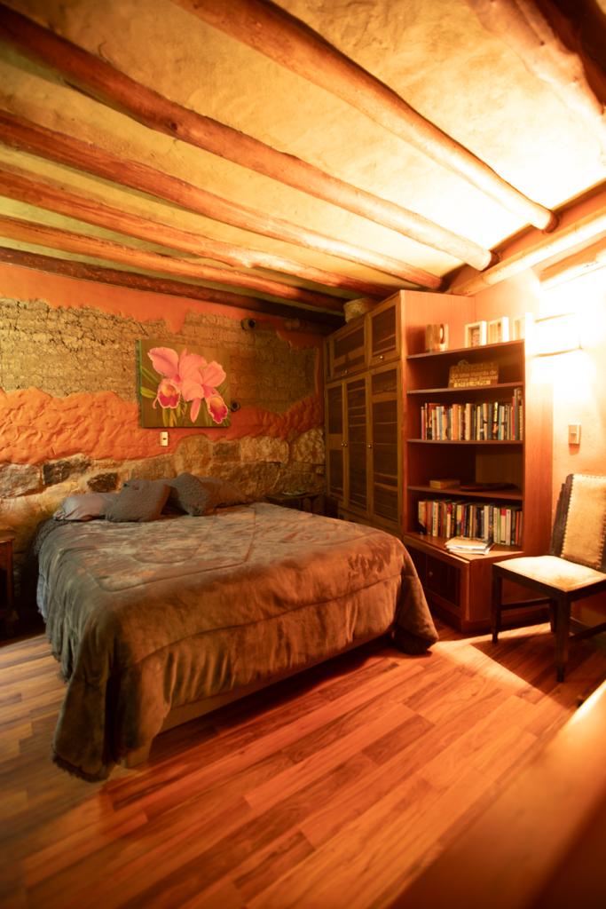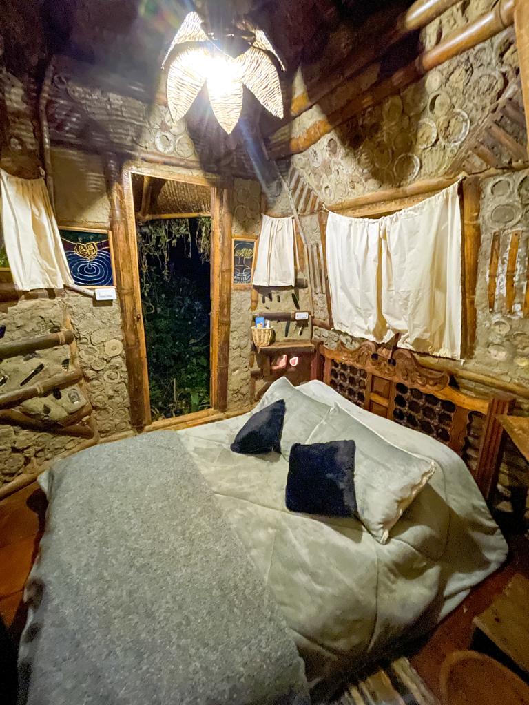 Pasando por el tunel del conocimiento, dentro de la casa principal de la reserva, llegarás a la Suite Dalia, una habitación construida con bareque, adobe, tapia pisada y roca.