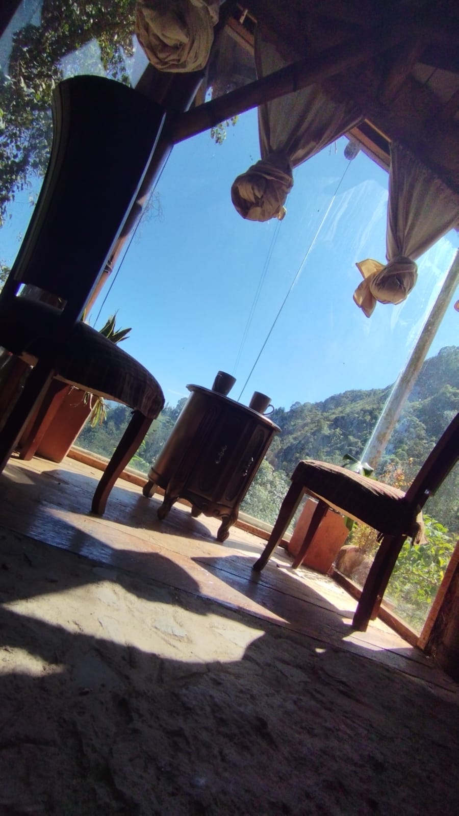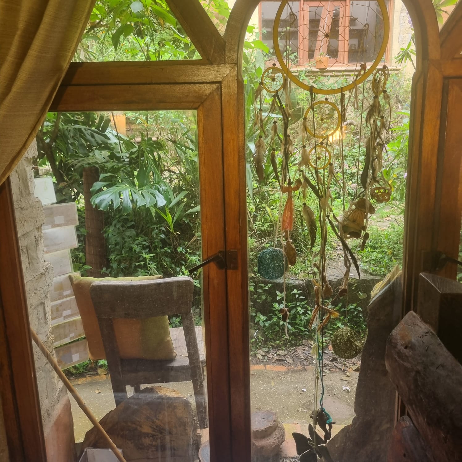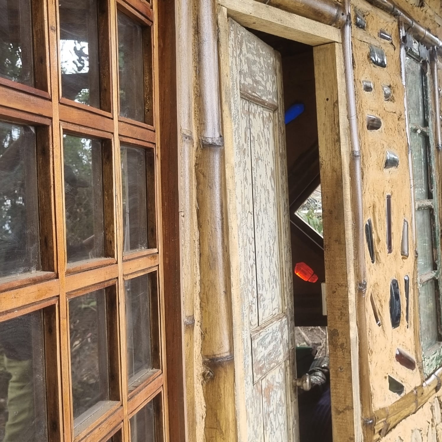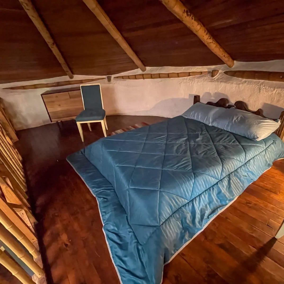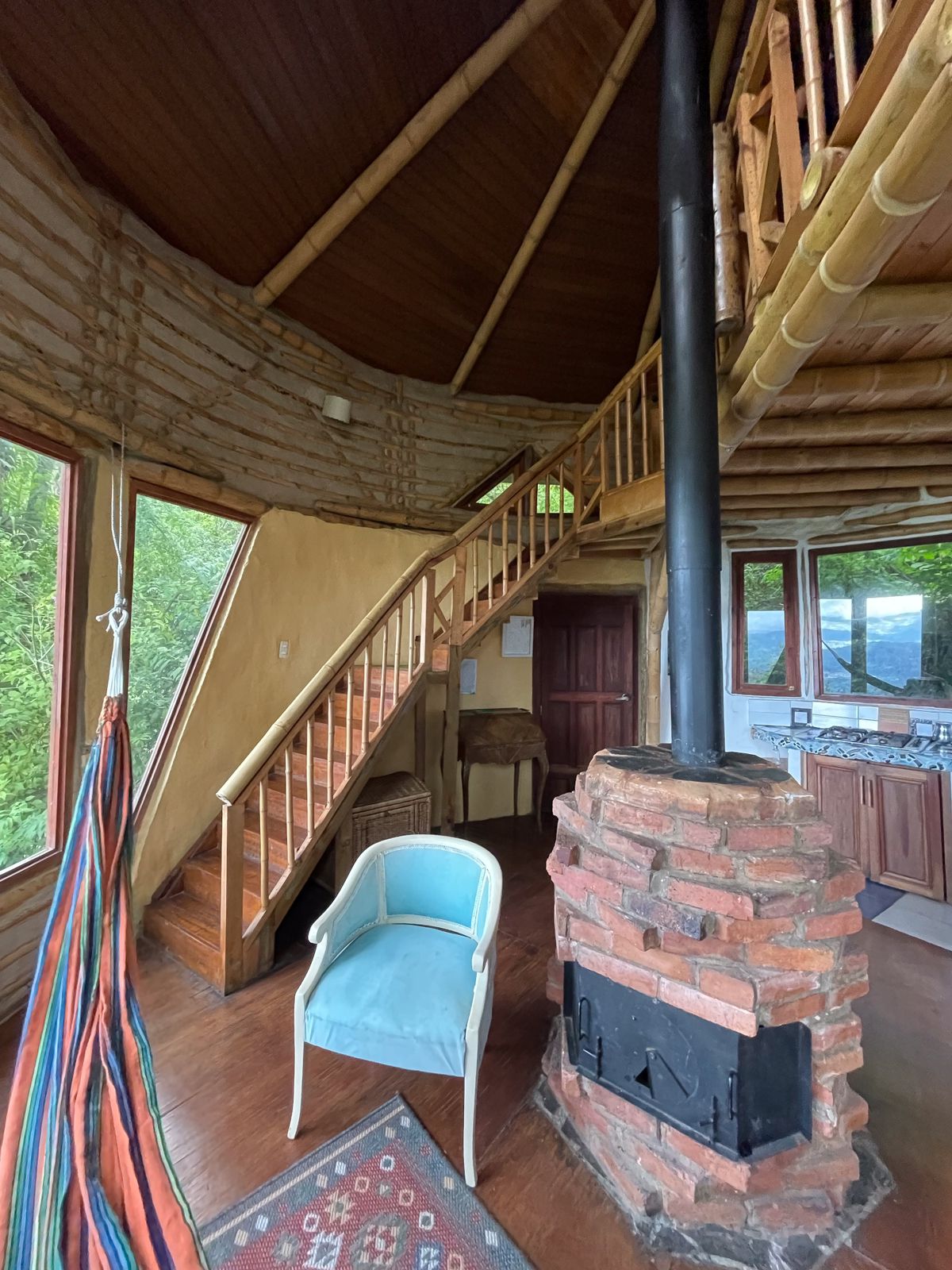 La Candelaria es un espacio nuevo. Construida con puertas y ventanas antiguas de caoba, nogal y cedro, este refugio tiene magia y confort. La visitaron 2 arquitectos de mucho renombre…él dijo que era un espacio ecléctico. Ella, que era como el Gaudi de Colombia. Esta cabaña incluye: