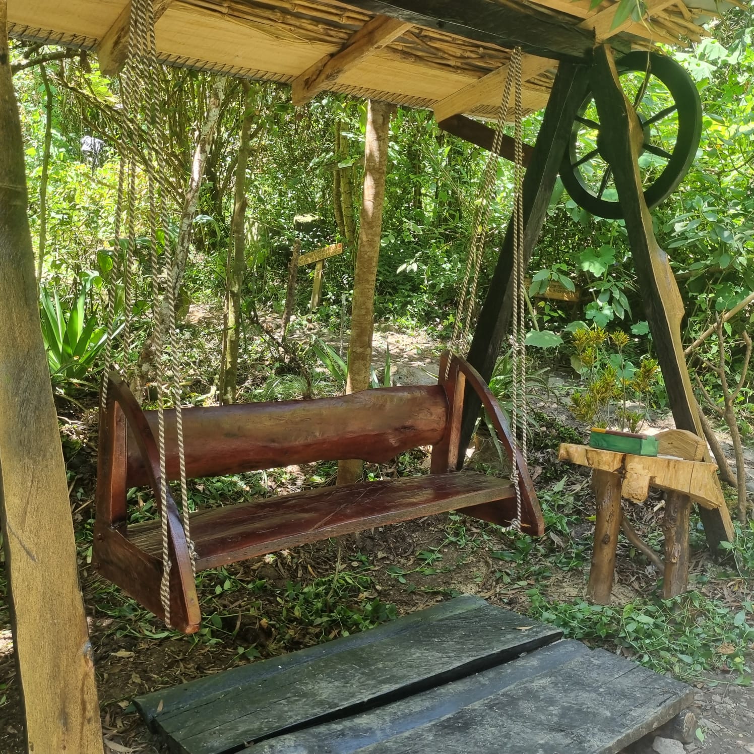 - Una quebrada que pasa por debajo de la casa e invita a bañarse en ella